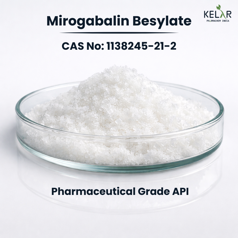 Kelar Pharmachem India serves as a reliable global sourcing partner for Mirogabalin Besylate API, ensuring consistent supply through trusted and validated networks. The product is packed in export-compliant packaging to preserve quality during international transit, with flexible packaging options available as per client requirements.